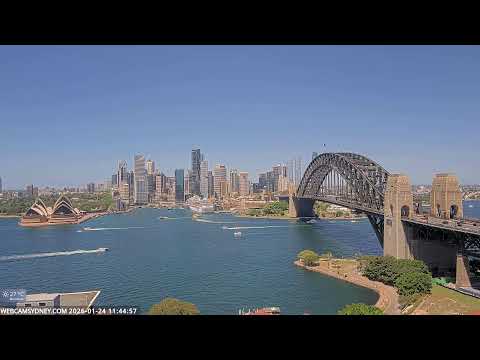 WebcamSydney 2 at youtube.com/live/jshwkG1ZpP8 provides a panning livestream 24/7, a sweep of almost 180 degrees of the harbour, showing most of the main features.