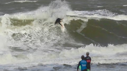Surfing during the hurricane that hit a few days ago… it was an insane experience, super windy, but honestly just another day out in the water for us surfers in the Netherlands and Belgium.