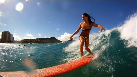 Join Roxy surfer Kelia Moniz on a longboard session at the beautiful Waikiki Beach. Listen in as she shares her dreams and aspirations with lil' grommet surfer Lily Richards.